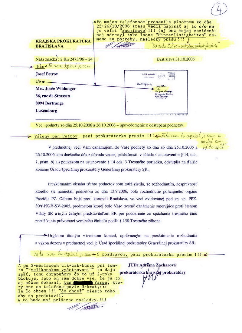 Upovedomenie Krajskej prokuratúry o odstúpení podnetu Úradu špeciálnej prokuratúry II.37.