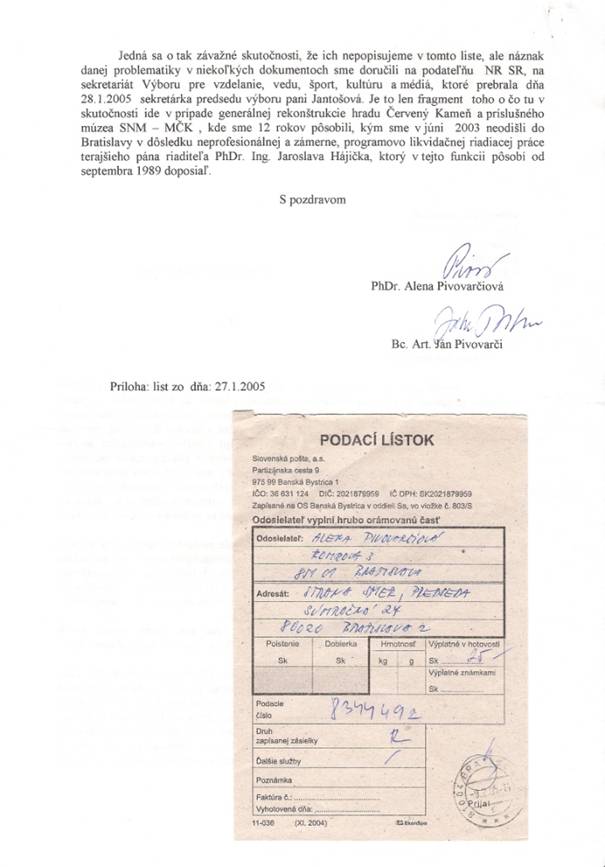 opäť Vám zasielame list ktorý sme Vám s veľkými očakávaniami zaslali v roku 2005 a na ktorý sme dodnes nedostali žiadnu odpoveď.