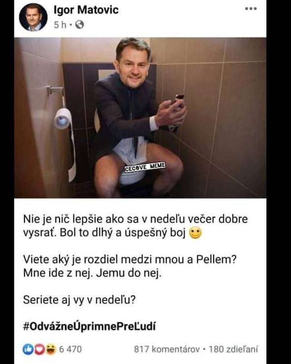 Toto zdieľanie som našla dnes t.j. 18.5.2020 na internete vraj je to na FB Iginka Matelka 🤡 ale keď som sa pozrela na jeho časovú os tak nič také som tam nenašla žeby Iginko toto vypotil...hoci nie je môj favorit ale je moje znamenie Býk a Byci toto určite neurobia a y takto niekoho ponizili 🤗🤗🤗. Takže kto muti vody na internete 🤗🤗🤗 . Komando Satanistov čo zavraždili aj Kuciaka 🤗🤗🤗. Určite áno 🤗🤗🤗