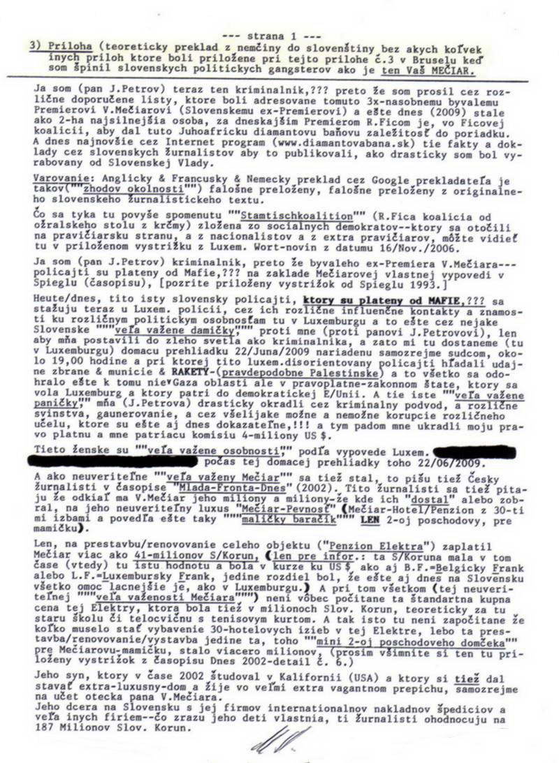 Ďalšie listy najlepšieho priateľa (vydávajúceho sa za J. Petrova) V. Mečiarovi