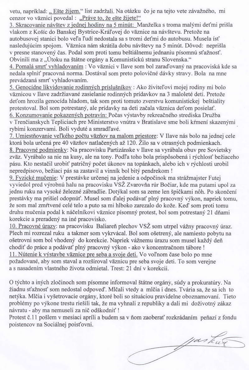 Prílohy listu Jozefa Petrova vyšetrovateľovi OR PZ OPP OO - Košice-Šaca