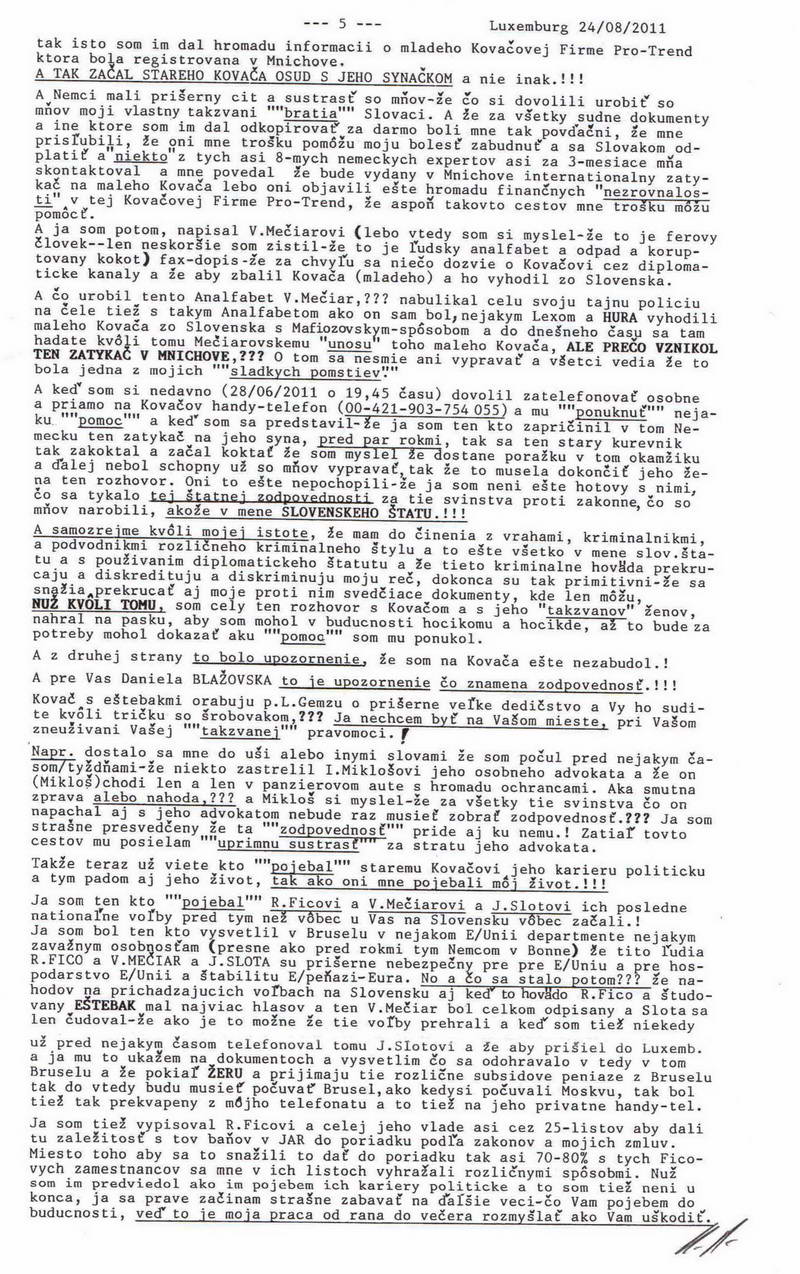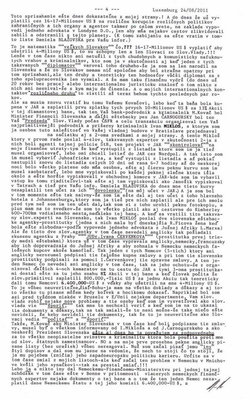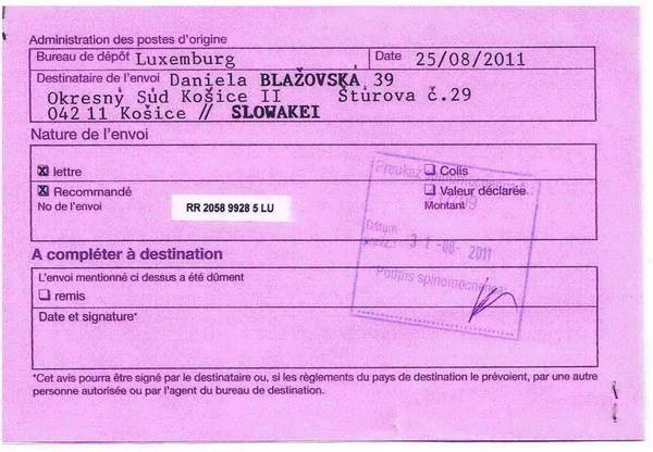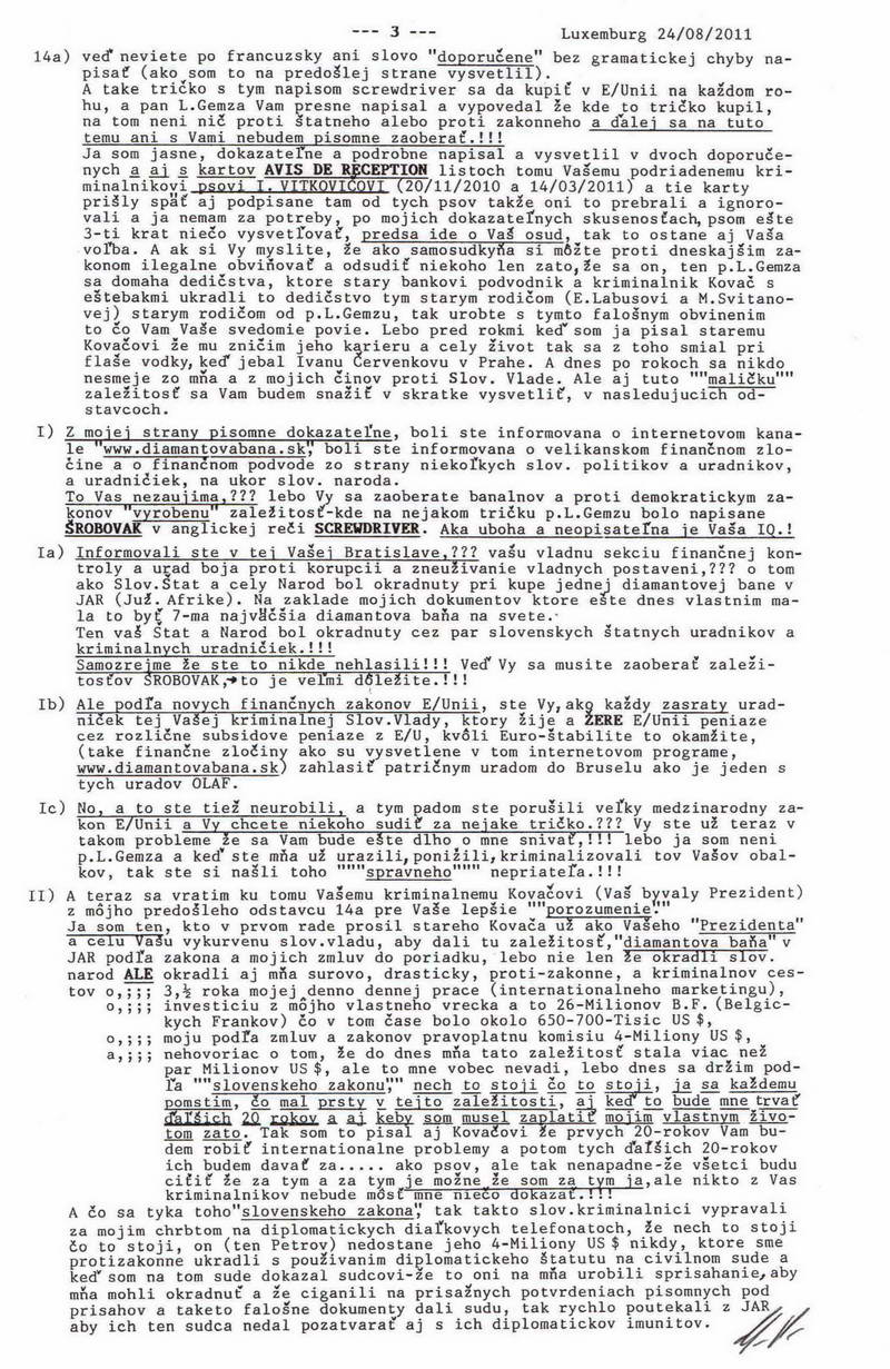 Vážení čitatelia, zdá sa vám úplne normálne ak dostanete zo súdu úradnú zásielku s Vašim menom bez oslovenia a s vašim dátumom narodenia na obálke? Takýmto spôsobom totiž komunistickí sudcovia pred rokom 1989 dávali ostentatívne najavo občanom, že sú pre nich len kriminálnym číslom a potencionálnym materiálom pre väznice. Po pochybnom prevrate v novembri 1989, kedy pokračovala kontinuita totalitnej justície preto vôbec neprekvapuje, že košická sudkyňa JUDr. Daniela Blažovská  v duchu revolučných tradícii odoslala obálku Lukášovi Gemzovi na adresu v Luxemburgu kde sa pridelenia čísla ušlo aj pánovi Jozefovi Petrovovi. Jeho list je preto primeranou reakciou podľa slovenského porekadla „na hrubé vrece-hrubá záplata.“Pre úplnosť uverejňujeme aj žiadosť Lukáša Gemzu o odmietnutie účasti na hlavnom konaní sp. zn. 5T64/2011