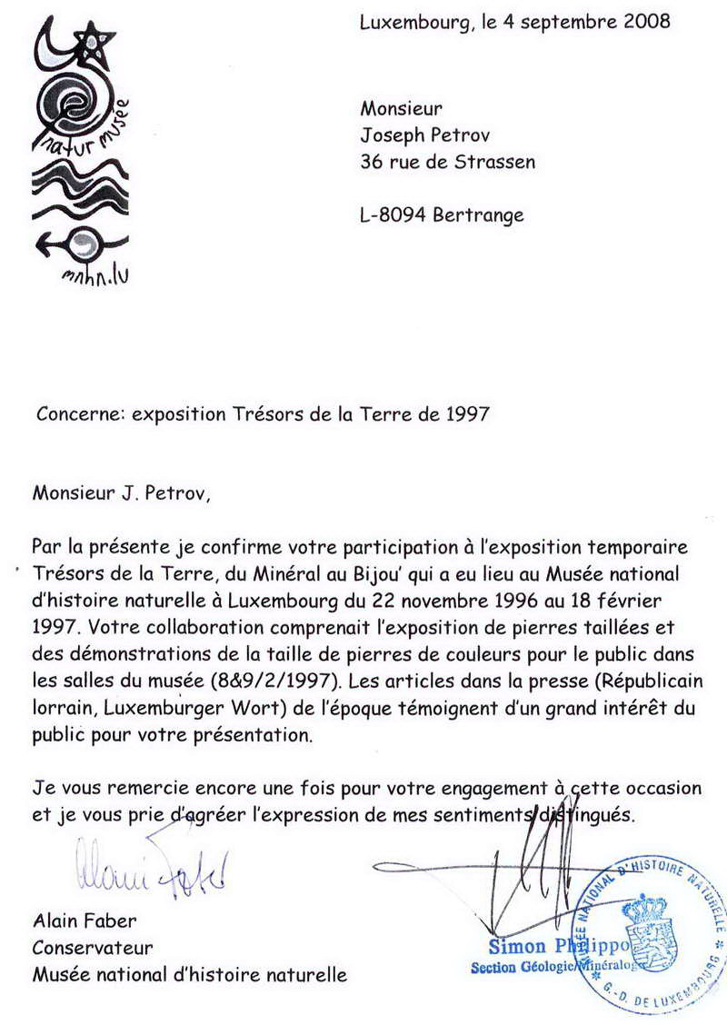 List zo 4. septembra 2008- páni Alain Faber a Simon Philippo potvrdzujú účasť pána Petrova výstave vo februári 1997, čím definitívne vyvrátili tvrdenia dezinformátora pod zn. „pipo“ na www.prop.sk.