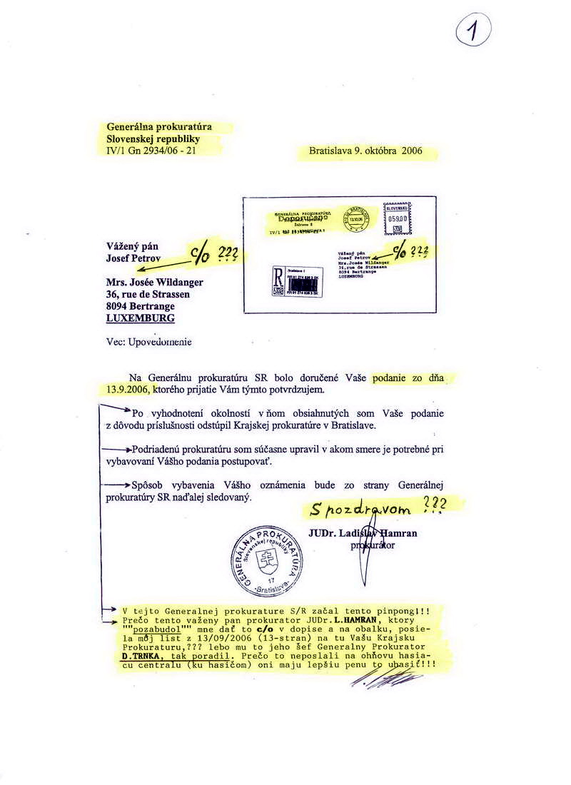Upovedomenie Generálnej prokuratúry SR o odstúpení Krajskej prokuratúre v Bratislave34.