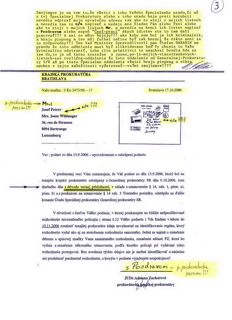 Upovedomenie Krajskej prokuratúry o odstúpení podnetu Úradu špeciálnej prokuratúry I.36.
