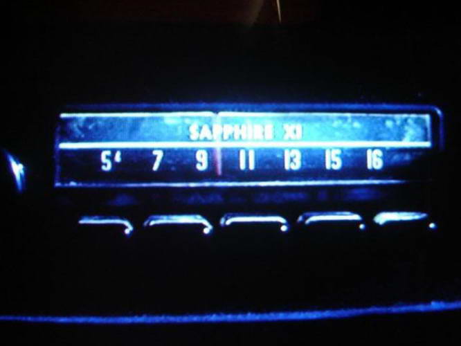 Film Gremlins (1984) - Zach Galligan nastúpi do svojho auta Volkswagen Beetle a naštartuje motor. Zapne rádio a červený indikátor sa nachádza medzi číslami 9 a 11.
