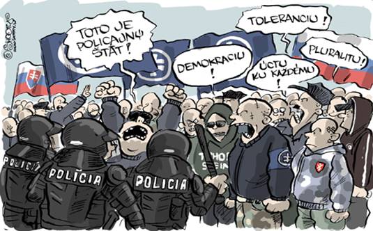 Naša polícia je hanba tohto systému a celej spoločnosti. Od radových až po kukláčov. Silní ste len v uniforme keď akože predstavujete zákon a dobro. Ja sa pýtam, aký ste vy zákon a aké dobro? Keď bijete ľudí, ktorí chcú prežiť? Keď bijete vlastný národ? Vy ste akože dobro a zákon? Kto vám dal tú moc, vari Boh? Kto vám dal do hlavy, že vy ste zákon? Ste chorí a zvrátení a nie ste vôbec nič. Ste jedna veľká smradľavá žumpa plná fekálií a nič iné.