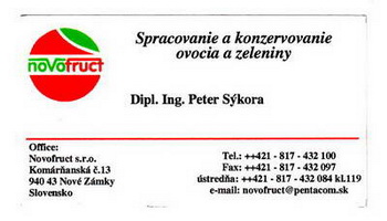 Dôkaz: Vklad do Novofructu s.r.o. Bratislava , vizitka Novofruct Nové Zámky – sú súčasťou článku.