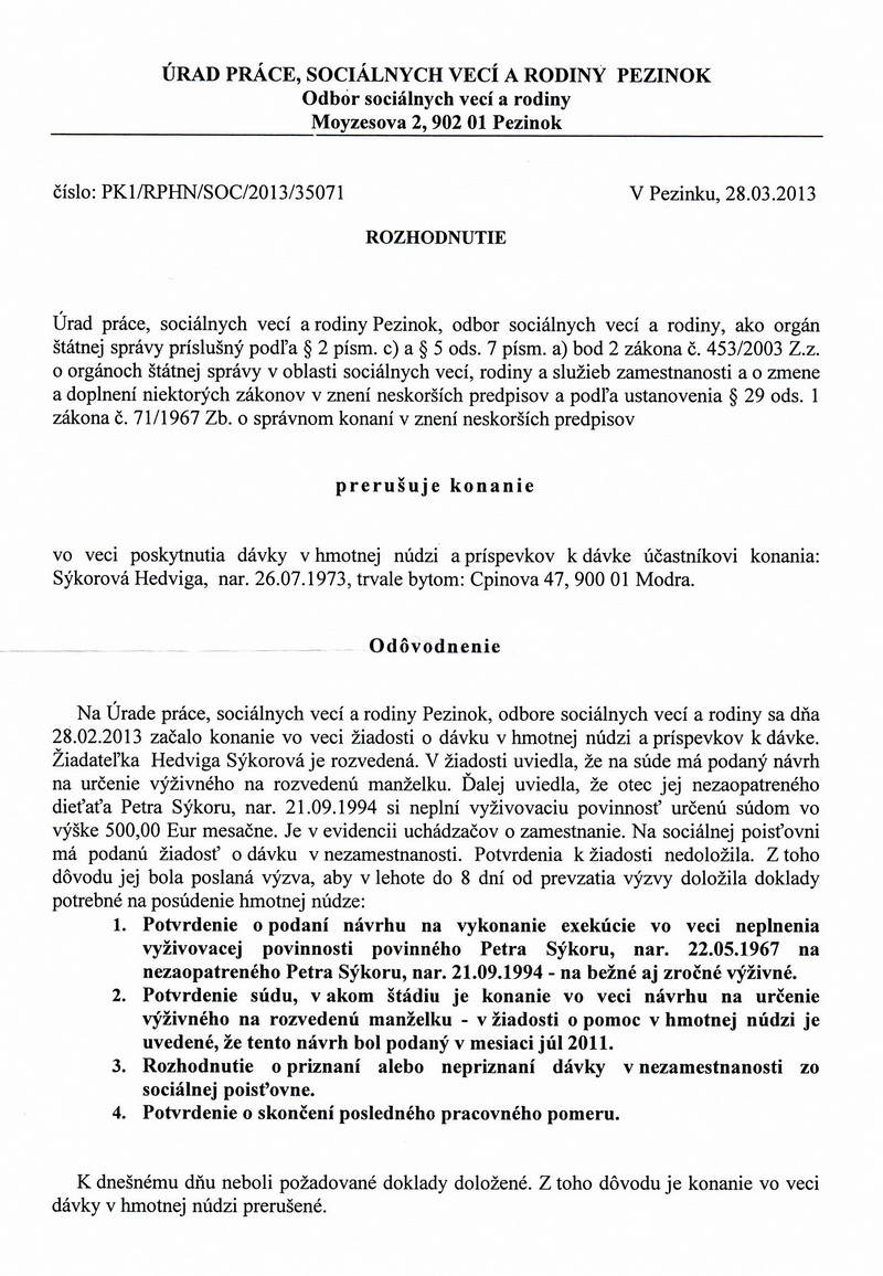 Svedectvo bývalej mafiánovej svokry – 41. časťPýtam sa Vás, Vy špinaví smerácki hajzli z Odboru sociálnych vecí v PezinkuAko som už písal, najvyššie špičky mafiánsko-gaunerského, arcizločineckého a arcizlodejského Smeru v spolupráci s mafiánskymi supergaunermi Zoroslavom Kollárom a Petrom Sýkorom, za účinnej pomoci zbabelých sráčov a spolupáchateľov riadiacich MV SR, GP SR a slovenskú justíciu, sa rozhodli, keďže už si ich netrúfajú fyzicky zlikvidovať, ekonomicky zraziť na kolená, totálnym vyhladovaním, Ing. Danku Bobekovú, jej dcéru Hedvigu a jej vnuka Petra za to, že sa rozhodla uverejňovať na mojich stránkach doteraz nepublikované a utajované veci o prepojení smeráckej mafie na zločinecké mafie Zoroslava Kollára a Petra Sýkoru, o ich spoločných ekonomických miliónových a miliardových kšeftoch a podvodoch. Hanba a hnus, že tí, ktorí majú chrániť štát o občanov, idú v jednom šíku so zločincami pri likvidácii nepohodlných jedincov. Hanba a hnus tzv. investigatívnemu novinárovi Nicholsonovi, ktorý si pred rokom požičal od nej závažné materiály, tieto doteraz nevrátil a všetko nasvedčuje tomu, že tieto materiály dodal práve tým, ktorých usvedčovali, aby mohli urobiť protiopatrenia. Gaunerské smerácke prasce Fico, Glváč, Kaliňák, Počiatek, Borec, Flašík a im podobní, keď tomuto zločineckému politickému subjektu mafiánsko-gaunerské prasa Peter Sýkora cez svoje biele kone čistil o stovky miliónov ich podvodnícke firmy, dával ich do bankrotu s mnohomiliónovými nedoplatkami, aby tieto smerácke prasce cez biele kone opätovne zakladali nové firmy a pokračovali v ďalších podvodoch a zlodejstvách. Doteraz, v histórii Slovenska, nikto nemal odvahu do takéhoto niečoho sa pustiť, s výnimkou Ing. Danky Bobekovej. Ako sa nechali počuť dve mafiánsko-gaunerské prasce Zoroslav Kollár a Peter Sýkora, že majú takú moc, že exmanželku a syna Petra Sýkoru jednoducho ekonomicky zničia, pričom ešte počas manželstva toto prasa z nej urobilo cez rôzne podvody, bez jej vedomia bieleho koňa, aby boli do konca života zaťažení dlžobami, lebo všetci im idú po ruke – politici, prokuratúra, súdy, polícia, keďže ich držia v hrsti ako skompromitovaných a skorumpovaných. Teraz si názorne ukážeme, ako sa na jeho žene mstí a šikanuje ju smerácka prašivina z Odboru sociálnych vecí v Pezinku, ohľadom obyčajného príspevku, na ktorý má nárok, pričom sa jedná o necelých 70 euro. Ohľadom tohto príspevku Hedviga Sýkorová vždy na Odbor sociálnych vecí v Pezinku osobne doručila čo od nej požadovali. Doručila doklad o zaplatení odpadov, o zaplatení dane z nehnuteľnosti za rodinný dom, doklad o ukončení podnikateľskej činnosti. Pracovný pomer žiadny nemala, nemala teda čo potvrdzovať, informovala pracovníčku, že má na súde podanú žiadosť o príspevok na rozvedenú manželku, ale súdne konanie nie je ukončené. Informovala o návrhu na exekúciu dlhovaného výživného na syna Petra a predložila doklad o odoslaní žiadosti súdnemu exekútorovi. V deň, keď obdržala z exekútorského úradu oznámenie o začatí exekúcie, osobne ho priniesla na sociálny odbor, ale pracovníčka ho odmietla s tým, že už jej žiadosť zamietla. Taktiež nemôže pochopiť, načo sú jej súdne rozhodnutia, keď jej aj tak gauner – bývalý manžel, ako sa vyjadril, nikdy nebude platiť. Smerácku prašivinu na Odbore sociálnych vecí v Pezinku, ako aj ministra smeráckej prašiviny Richtera by malo zaujímať, že nemá žiadny príjem a je dlhodobo chorá. A tieto špinavé smerácke prasce, ktoré ju úmyselne a zbytočne šikanovali, možno aj s tým úmyslom, aby zbytočne mrhala peniaze na cestu na tento úrad, lebo, ako jej odkázalo mafiánsko-gaunerské prasa Peter Sýkora ešte pred 2-3 rokmi, „ja vás úplne ekonomicky zničím.“ Keďže povestný je aj jeho výrok, „keby som prehovoril, tak Smer padne“- a všetko nasvedčuje tomu, že mafiánsko-gaunerská smerácka verbež, polícia, prokuratúra a súdy sú mu nápomocná v ekonomickej likvidácii jeho exmanželky a syna. Nakoniec aj tých 40 častí, doteraz uverejnených, tomu nasvedčuje.