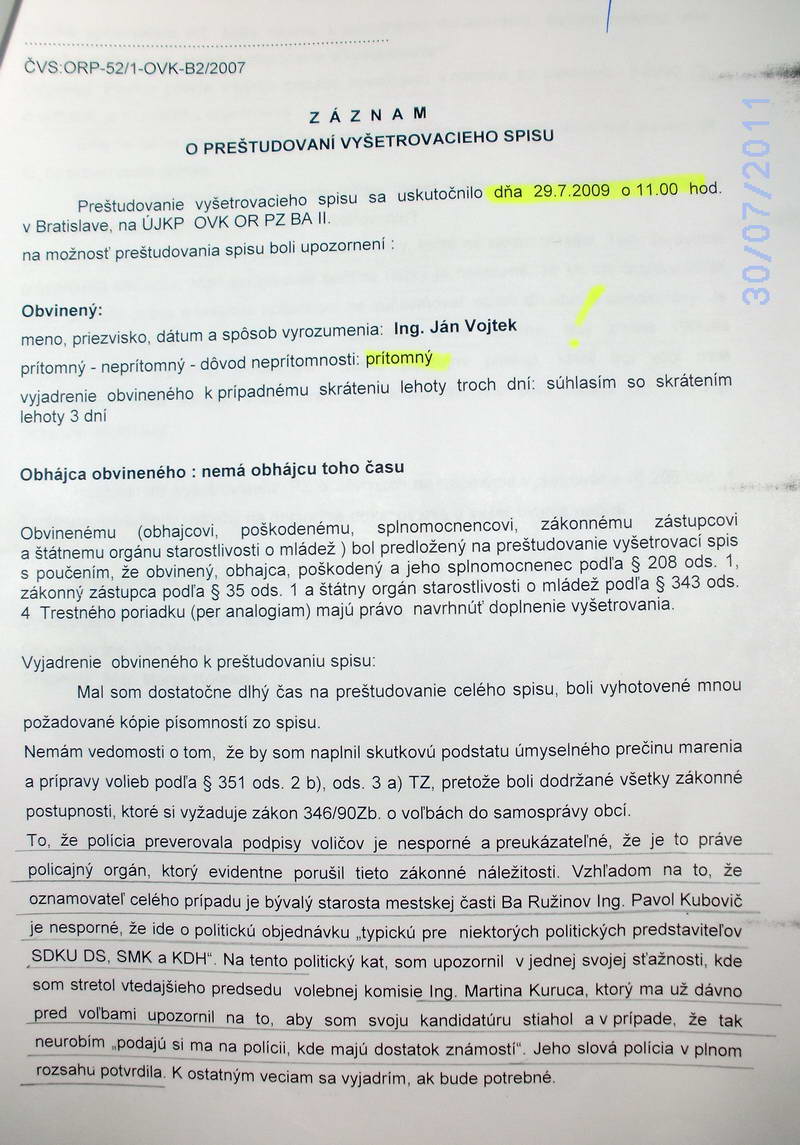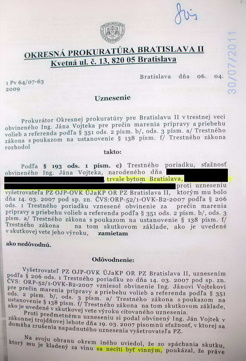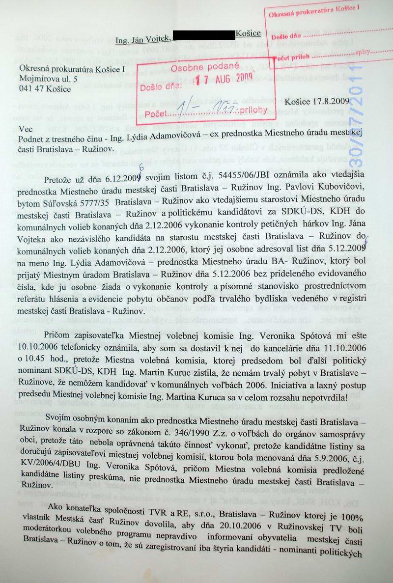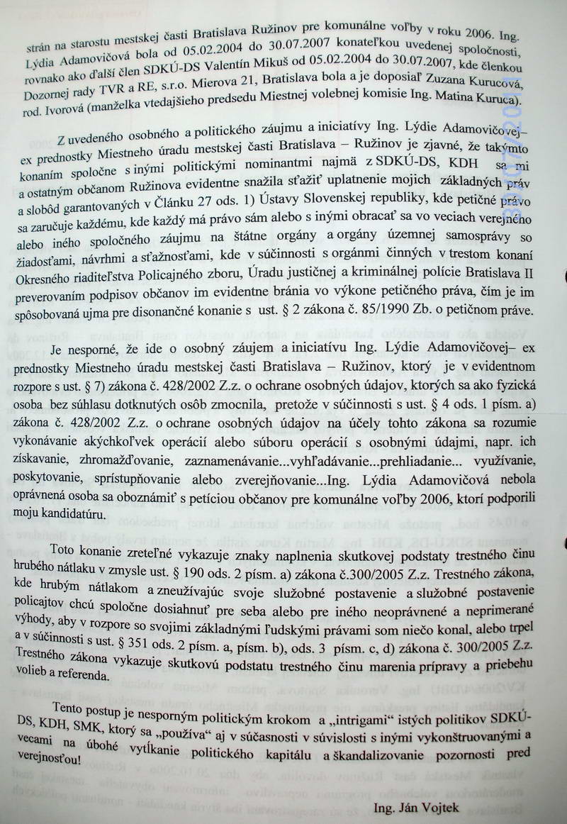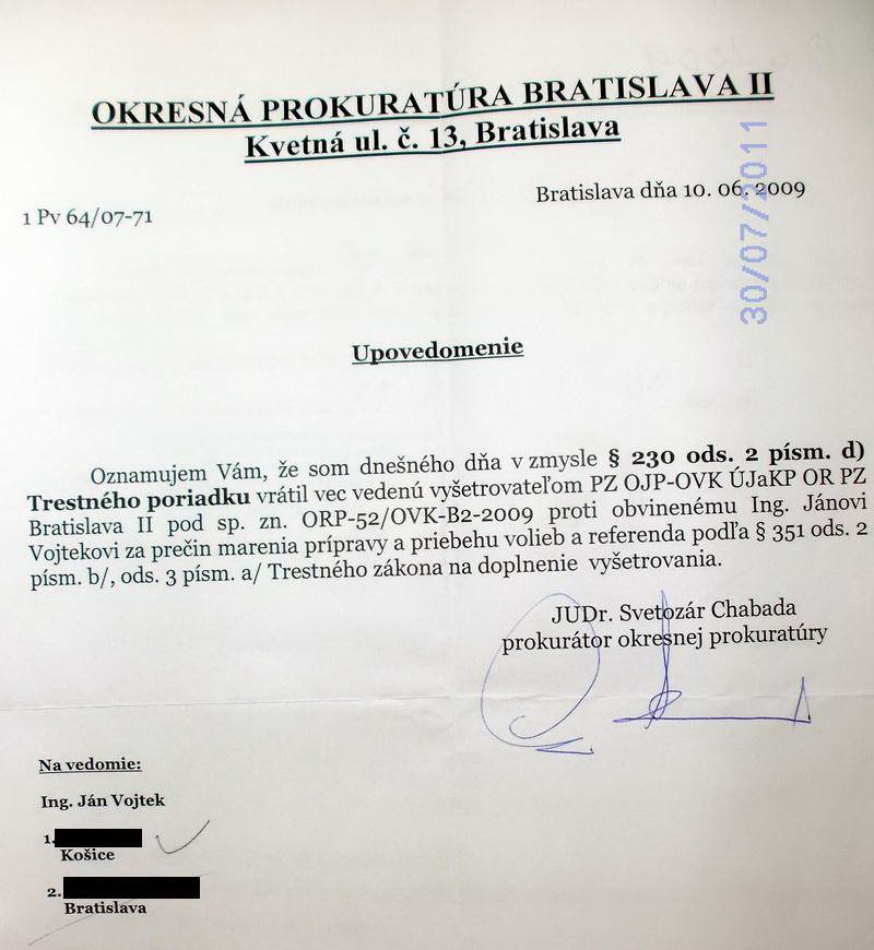 V tejto časti na základe autentických dokumentov sa čitatelia dozvedia ako prokurátor Okresnej prokuratúry Bratislava II, JUDr. Svetozár Chabada dňa 6. 4. 2009 zamieta jeho sťažnosť, ďalej je tam autentický dokument z 29. 7. 2009 ohľadom preštudovania spisu, ďalej ako prokurátor Okresnej prokuratúry Bratislava II vracia spis vyšetrovateľke a podnet Ing. Jána Vojteka na ex prednostku Ing. Lýdiu Adamovičovú na Okresnú prokuratúru Košice I.