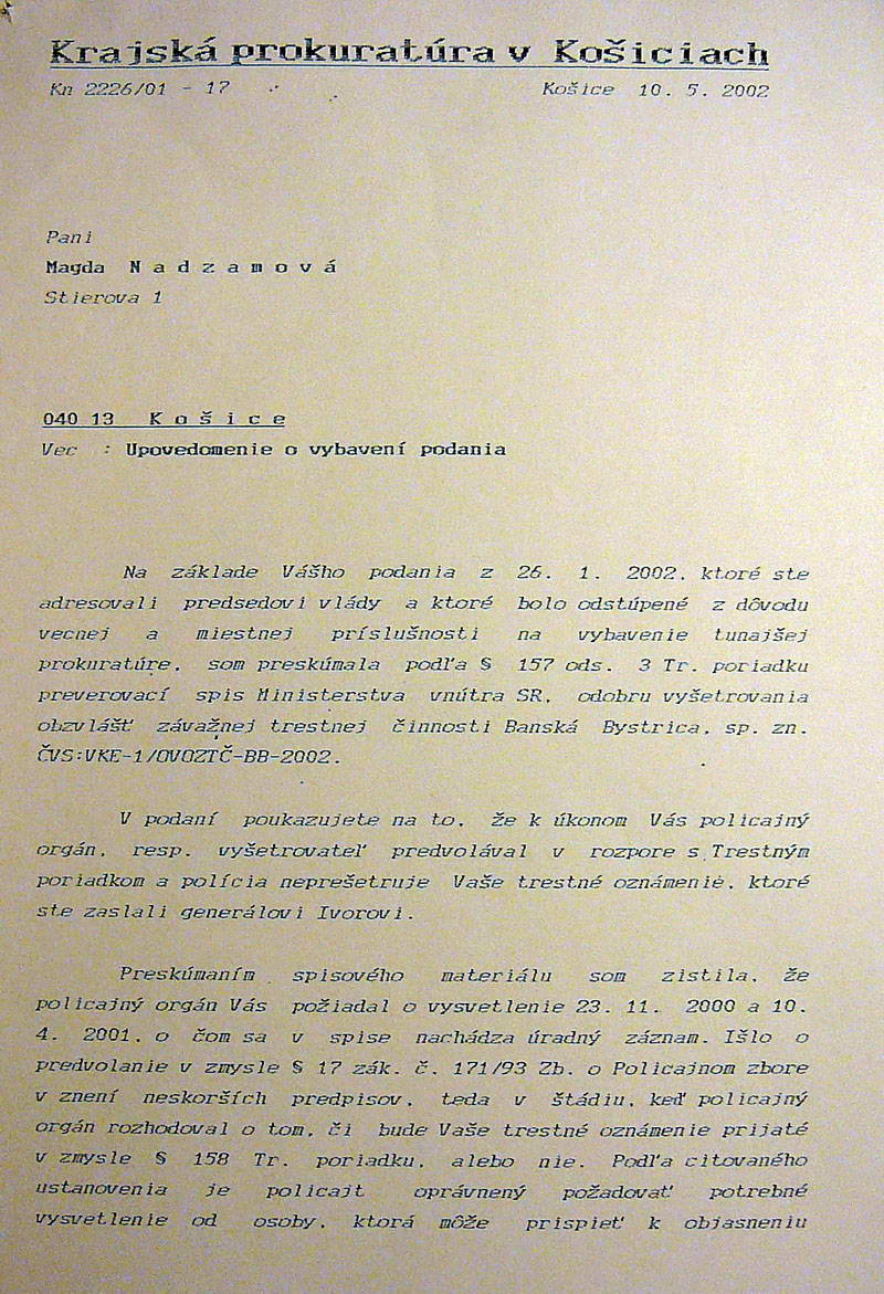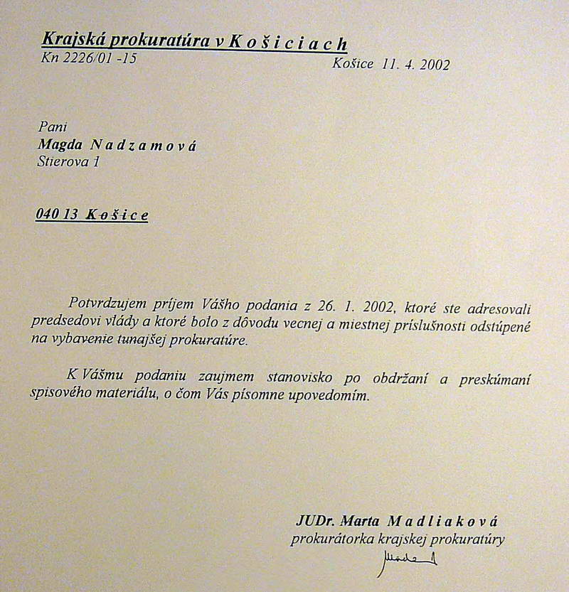 Pani Nadzamová, hlavná postava týchto dokumentov, to je skutočná a tá pravá osoba boja proti korupcii, ktorá ako osamelý jedinec sa postavila proti skorumpovaným gorilám a ich podobným gaunerom už pred vyše desiatimi rokmi, odhodlaná bojovať, hoci aj za cenu, keď bola niekoľkokrát ohrozovaná na zdraví a živote, keď ani naše mediálne prostitútky, naoko sa tváriace ako odhaľovatelia korupcie, ktoré v tom období skorumpovaným gorilám aj podržali, možno aj „vyfajčili“, pani Nadzamovú ignorovali.